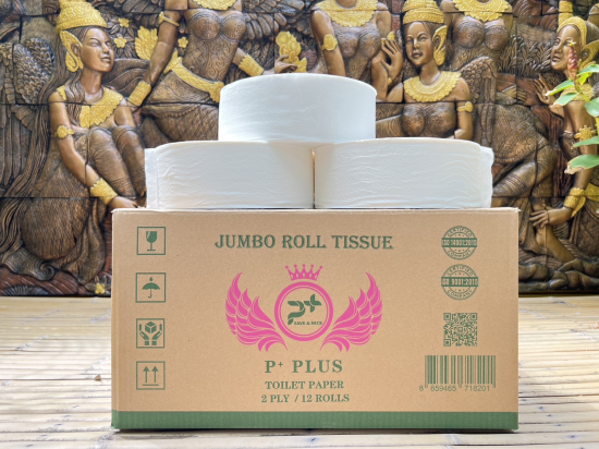 กระดาษชำระจัมโบ้โรล พีพลัส 2ชั้น อัดลาย (ชมพู+เขียว)