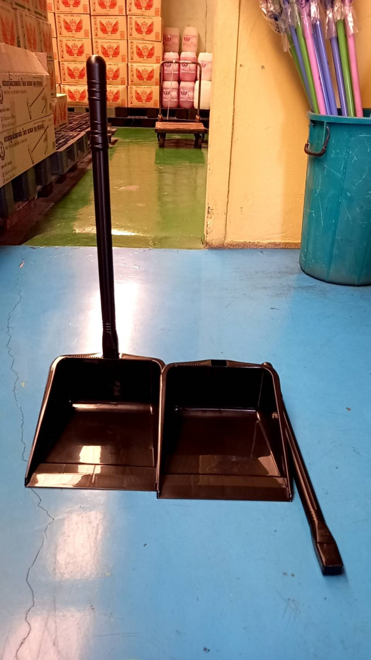 ตักขยะพลาสติก ด้ามยาว แบบสี / สีดำ